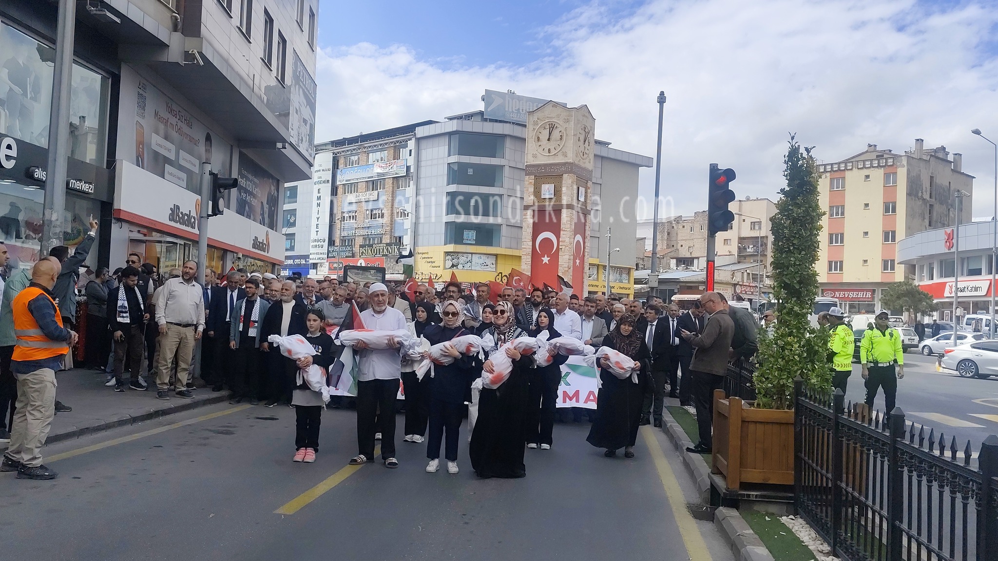 Nevşehir’de sivil toplum kuruluşlarının öncülüğünde, İsrail’in Gazze’ye uyguladığı ablukanın son bulması ve insani yardım ulaştırılmasına destek amacıyla Küresel Sumud Filosu’na dayanışma yürüyüşü gerçekleştirildi.